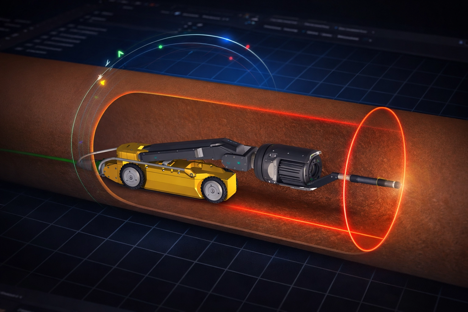 Im INSPECTOR ist das Modul Deformationsmessung vollständig in den bestehenden integriert. Die Messung erfolgt nach der TV-Inspektion in einem extra Arbeitsgang. Ein Laser projiziert das Profil auf die Rohrwand, Abweichungen vom Sollquerschnitt werden kontinuierlich erfasst und ausgewertet. Dadurch entstehen lückenlose Durchmesserverläufe anstelle punktueller Einzelmessungen.